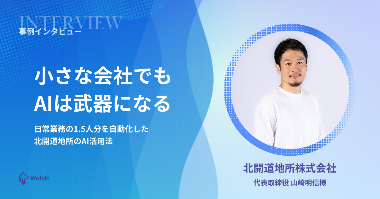 Wolkinは、「AIを、経営者の手足にする」をモットーに、2025年6月に札幌で創業。 現役エンジニアである役員がChatGPT登場当初から生成AIの効率化に着目し使い続けてきた知見を活かし、企業や個人の生産性を劇的に向上させる生成AI特化型のコンサルティング・開発スタートアップです。 東京・フィリピン・札幌と拠点を移しながら国内外で多様な組織をリードしてきた2名の経営者が、豊富な現場感覚経験をもとに、経営からAIの活用まで幅広いプロセスでご支援いたします。 ///////////////////////////// ▼ AIコーチング・伴走支援 業種別最適化と非エンジニア向け実践指導 各業界の特性に合わせた最小コストでのAIツール構成を提案。業種特有の課題に対応したソリューションをご提供します。プログラミング知識がなくても、AIを活用した業務効率化や社内システム開発を可能にする実践的な指導とノウハウを提供します。 ChatGPT、Gemini、n8n、Dify、Cursor等の使い方を実務に即して指導。業務に最適なAIツールの選定から運用まで一貫してサポートします。 → 実績:株式会社nuy様(3人目の採用前にAIを「社員」として活用、業務改善のスピードが劇的に向上)、ワンメディア株式会社様(属人化していた業務をAI+自動化基盤で効率化、経営陣が週2〜5時間のAI開発を習慣化) ▼ AIソリューション開発 Cursor+ChatGPTを活用した超短納期・高品質開発 お客様自身が編集・運用しやすいWeb・モバイルアプリの短納期開発と、AI(Cursor等)を活用した業務システムを提供。ハンズオン指導で自走化もサポートします。 最新のAI駆動型開発手法により、従来より大幅に短い開発期間でアプリケーションを構築。Webサイト、モバイルアプリ、Webアプリなど幅広い形式に対応し、お客様のビジネスニーズに合わせた柔軟な開発を実現します。開発後も機能追加やメンテナンスができるよう、技術移転を含めた実践的な指導を実施。お客様が自社で継続的に改善できる体制づくりをサポートします。 最短1週間でのプロトタイプ開発、1ヶ月での実用版リリースも可能。お客様のペースに合わせた開発スケジュールをご提案します。 → 実績:ORANGE AI Project(瀬戸内と経産省)、自社コーポレートサイト等 ▼ ワークフロー自動化 n8n・GAS・Difyによる業務プロセス効率化 n8nやGoogle Apps Script等のローコードツールを活用して、人力で行われている面倒な業務プロセスを効率化・自動化します。コストパフォーマンスに優れた解決策で、業務時間の削減と人的ミスの防止を実現します。 Slack連携でのToDo管理の自動化、複数ソースからのデータ収集・集計・レポート作成の自動化、日報・業務記録の自動集計と可視化など、日常業務の効率化を幅広くサポート。マネジメントの意思決定を支える仕組みを構築します。 |